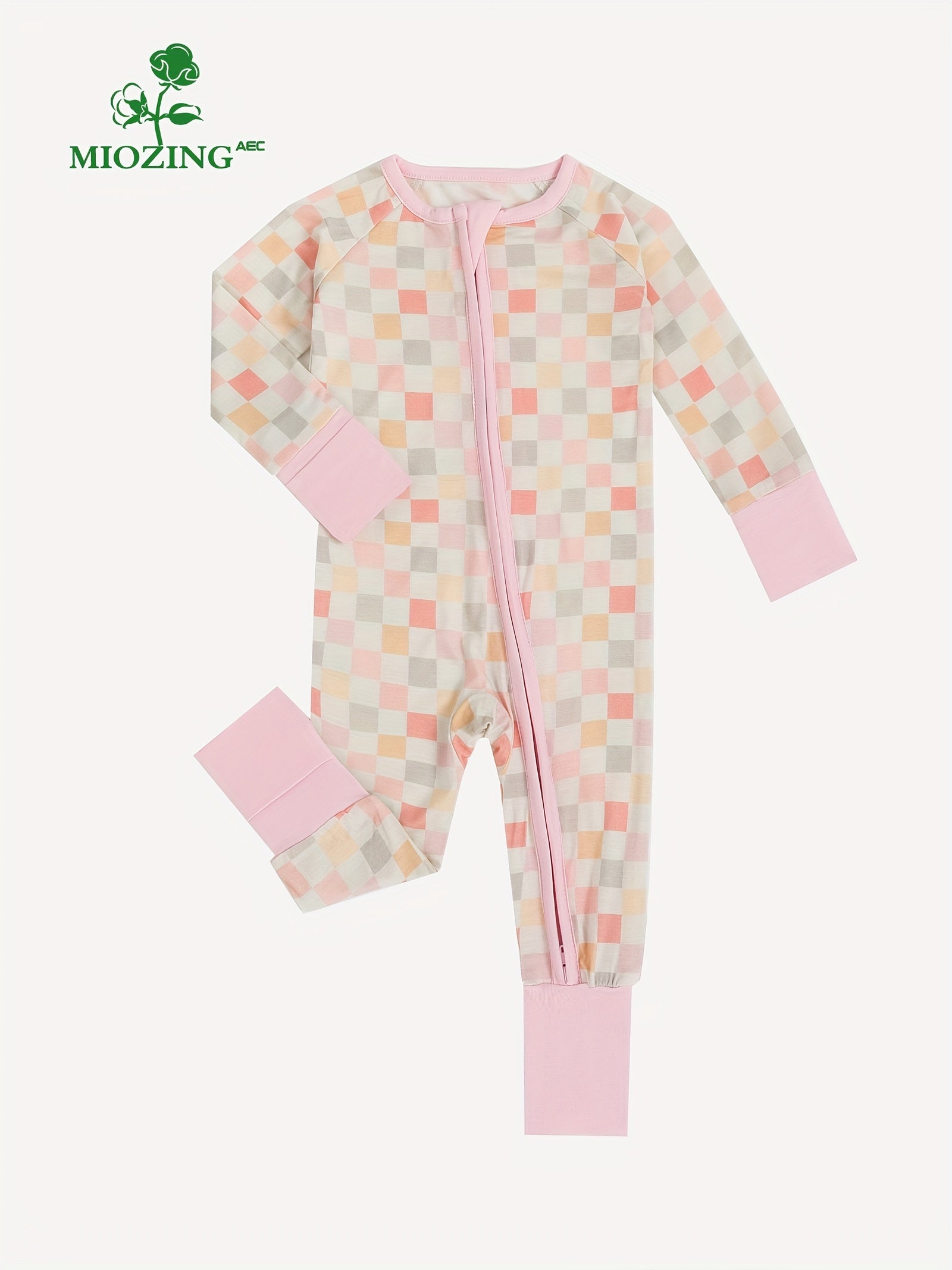 Cozy Bamboo Fiber Long Sleeve Baby Romper Jumpsuit - Soft, Breathable, Foldable Foot Cover, Zipper Design, Comfortable Wear - Perfect for Baby Boys and Girls, Everyday Casual Wear